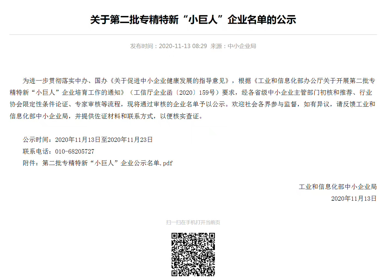 根據(jù)《關(guān)于組織推薦第二批國(guó)家級(jí)專精特新“小巨人”企業(yè)》文件通知要求,我司通過(guò)地方經(jīng)信推薦,符合申報(bào)要求,積極準(zhǔn)備相關(guān)資料上報(bào),經(jīng)各地經(jīng)信部門(mén)初審、市級(jí)相關(guān)部門(mén)會(huì)審以及省級(jí)專家評(píng)審,我司順利通過(guò)評(píng)審,成功入選“國(guó)家級(jí)專精特新“小巨人”名單,取得國(guó)家級(jí)榮譽(yù)。