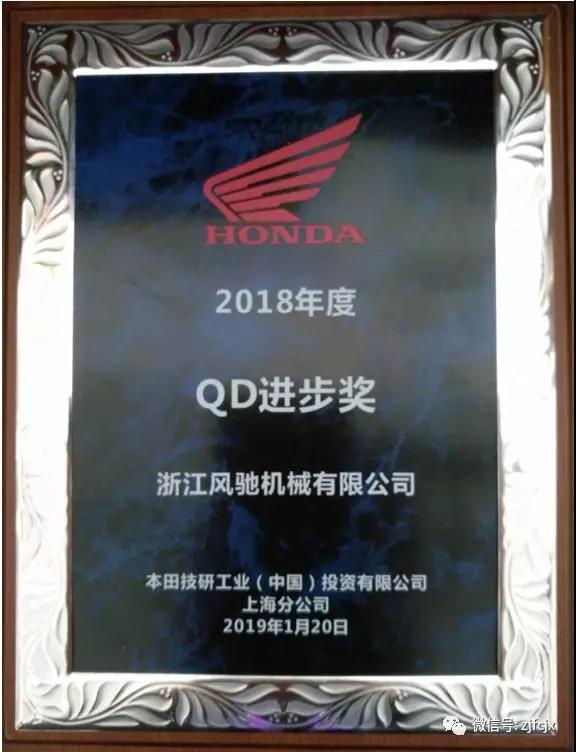 2019年1月榮獲本田頒發(fā)的“QD進(jìn)步獎(jiǎng)”