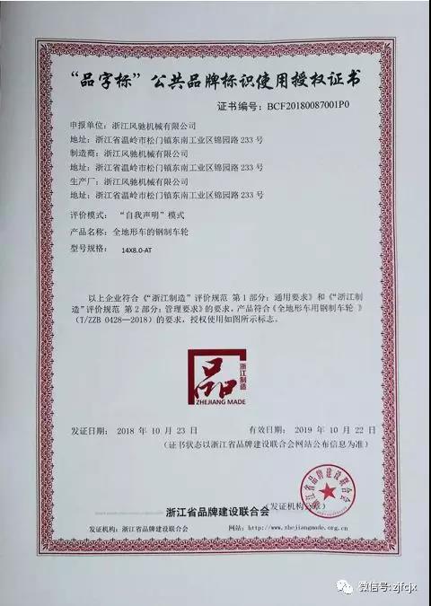 2018年10月榮獲浙江省品牌建設(shè)聯(lián)合會(huì)頒發(fā)的“品字標(biāo)”公共品牌標(biāo)識(shí)使用授權(quán)證書