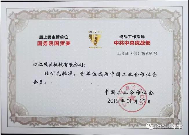 2019年1月榮獲中國工業(yè)合作協(xié)會(huì)頒發(fā)的“2019中國工業(yè)合作協(xié)會(huì)會(huì)員”