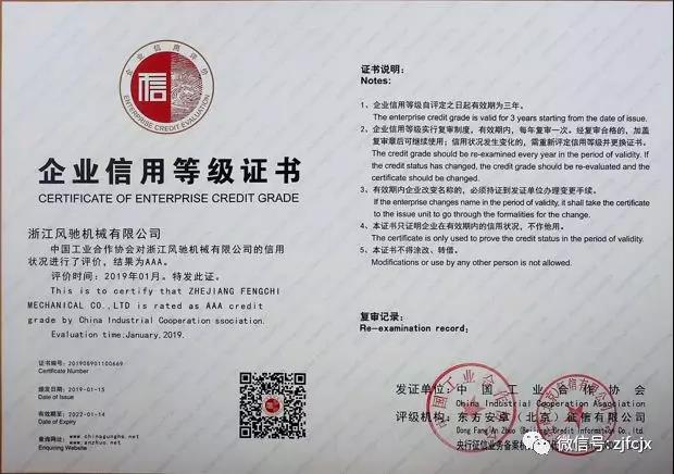 2018年7月榮獲浙江省工商行政管理局頒發(fā)的浙江省AAA級(jí)“守合同重信用”
