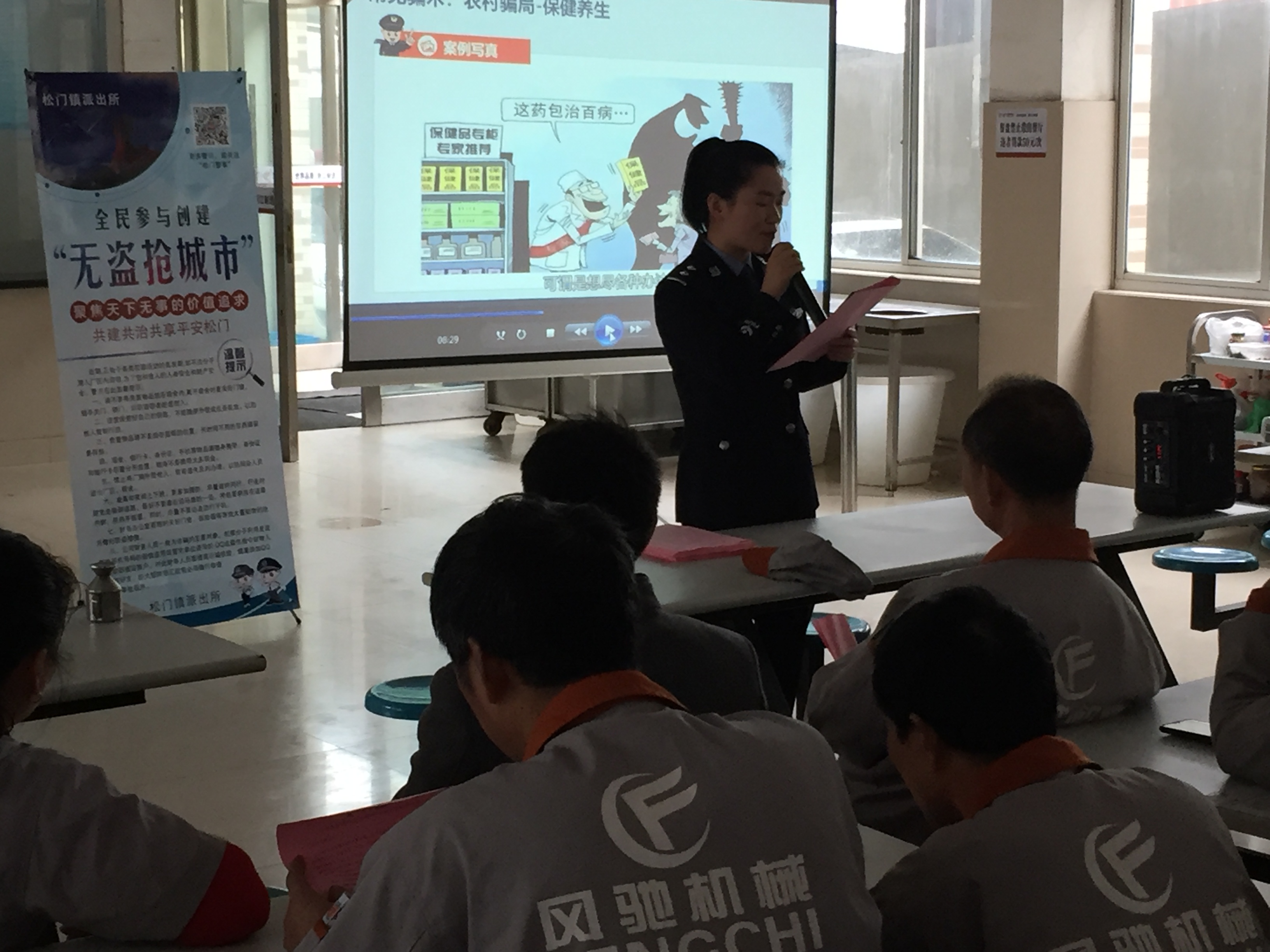 公司為了提高我企業(yè)員工的防盜、防強(qiáng)、防騙意識,同時大力支持創(chuàng)建臺州市“無盜搶城市”宣傳活動,在2019年3月20日下午,我司誠邀松門派出所人員前來給員工上了一堂防盜搶安全知識課,同時播放了創(chuàng)建“無盜搶城市”宣傳視頻。